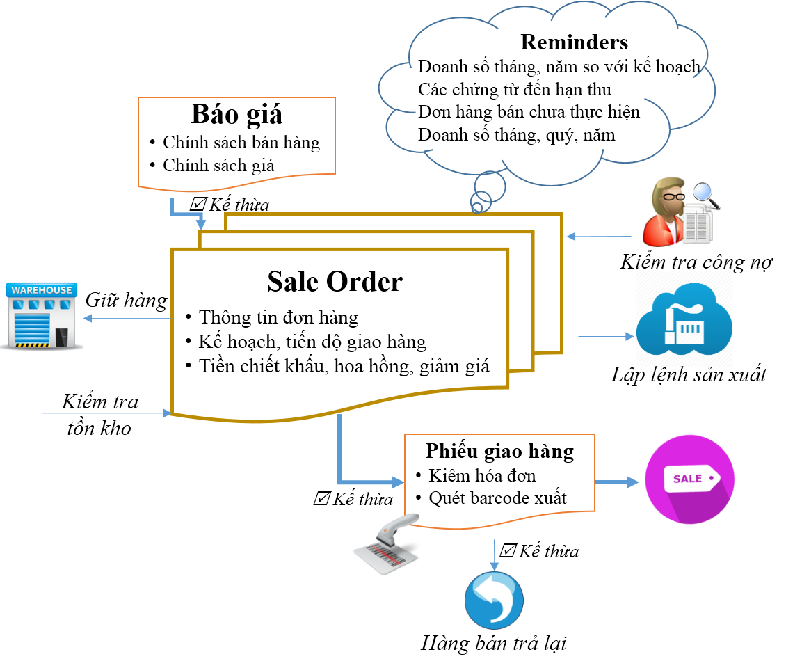 - Thiết lập chính sách giá bán bán hàng cho từng khách hàng, theo khu vực, sales, mùa vụ, nhóm hàng hóa…