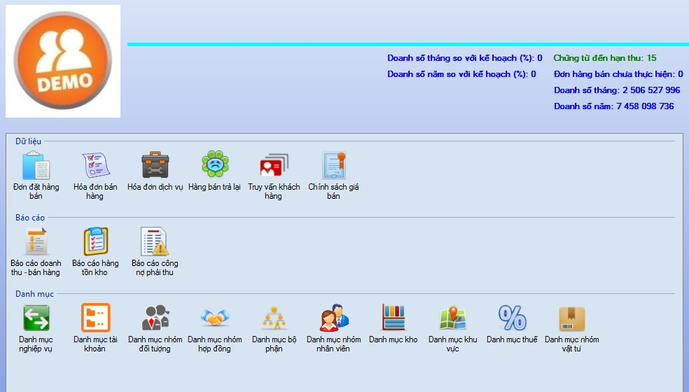 - Doanh số tháng, quý, năm
